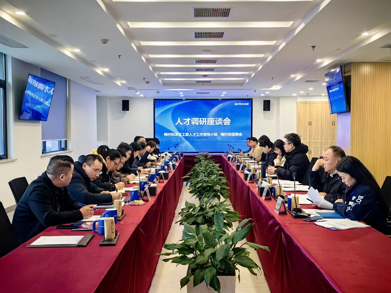 为促进高层次合作交流暨人才创新创业活动顺利开展,2024年新年伊始的元月2日下午,梅村街道党工委人才工作领导小组会同梅村商会在宝通带业召开人才调研座谈会,梅村街道党工委分管人才工作的吴俊委员及街道相关人才工作领导小组人员,梅村商会名誉会长王国平及商会相关人员,梅村商会高科技企业宝通带业、美峰橡胶、三喜胶基等15家企业法人代表或分管人才工作的负责人参加了会议。